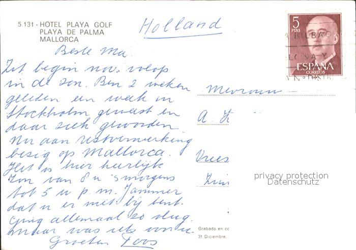 old postcard Playa de Palma Mallorca Hotel Playa Golf postalisch gelaufen Erhaltung siehe scans
