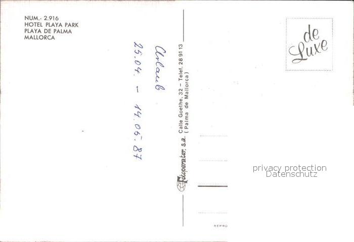 Playa de Palma Mallorca Hotel Playa Park Swimmingpool Strandpartie postalisch nicht gelaufen Erhaltung siehe scans
