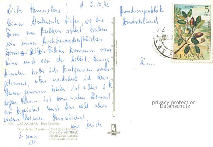 74005795 old postcard Playa de San Agustin Gran Canaria Hotel Costa Canaria Swimming Pool postalisch gelaufen Erhaltung siehe scans [FriedD77] KatCode: 11510