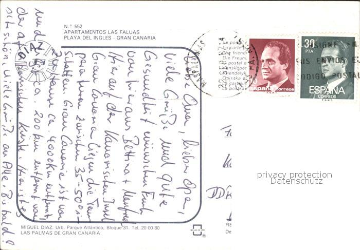 old postcard Playa del Ingles Apartamentos Las Faluas postalisch gelaufen Erhaltung siehe scans