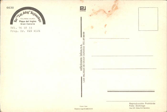 Playa del Ingles Bar Los Arcos Restaurante postalisch nicht gelaufen Erhaltung siehe scans