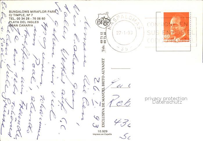 old postcard Playa del Ingles Bungalows Miraflor Park Swimming Pool postalisch gelaufen Erhaltung siehe scans [FriedD77]