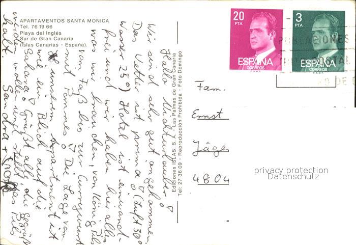 old postcard Playa del Ingles Fliegeraufnahme Apartamentos Santa Monica postalisch gelaufen Erhaltung siehe scans [LiesaD40]