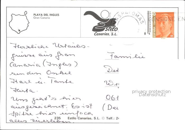 old postcard Playa del Ingles Fliegeraufnahme Strand Poolanlage postalisch gelaufen Erhaltung siehe scans