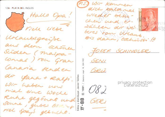 old postcard Playa del Ingles Freibad und Strand postalisch gelaufen Erhaltung siehe scans