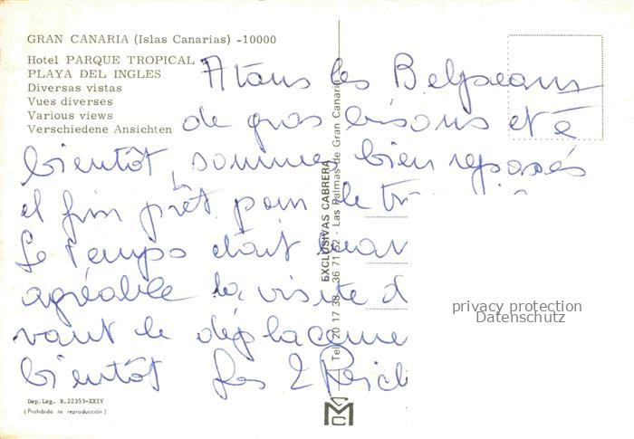 74093013 Playa del Ingles Gran Canaria ES Hotel Parque Tropical Pools Strand Panorama postalisch nicht gelaufen Erhaltung siehe scans [WerneD78] KatCode: 11510