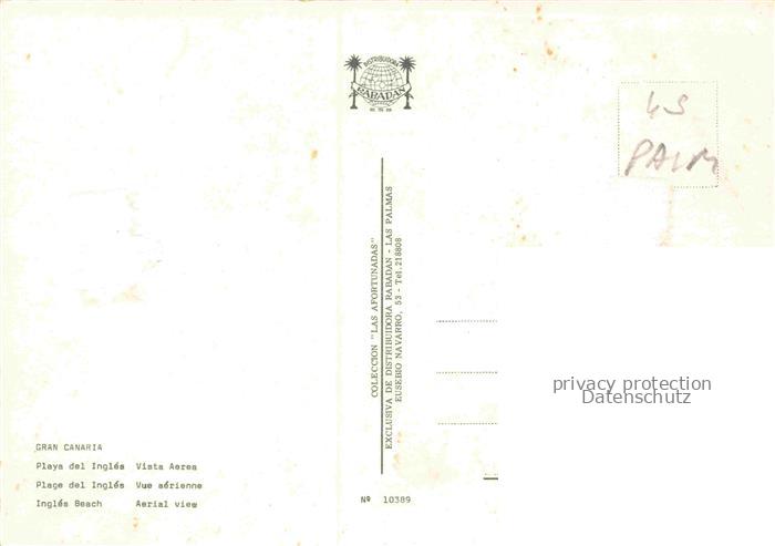 74156110 Playa del Ingles Gran Canaria ES Hotels Ferienanlagen postalisch nicht gelaufen Fliegeraufnahme Erhaltung siehe scans [FriedD77] KatCode: 11510