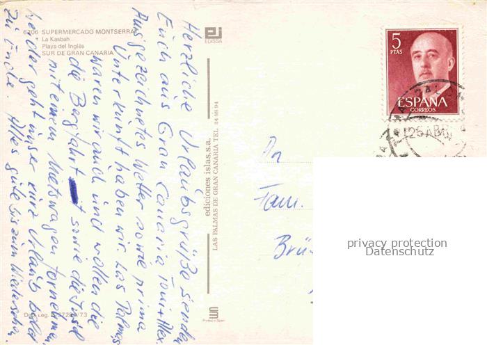 74100349 old postcard Playa del Ingles Gran Canaria ES Playa Supermercado Montserrat La Kasbah postalisch gelaufen Erhaltung siehe scans [FriedD77] KatCode: 11510