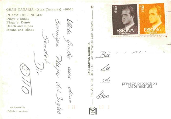 74033792 old postcard Playa del Ingles Gran Canaria ES Playa y dunas Badenixe am Strand postalisch gelaufen Erhaltung siehe scans [FriedD77] KatCode: 11510