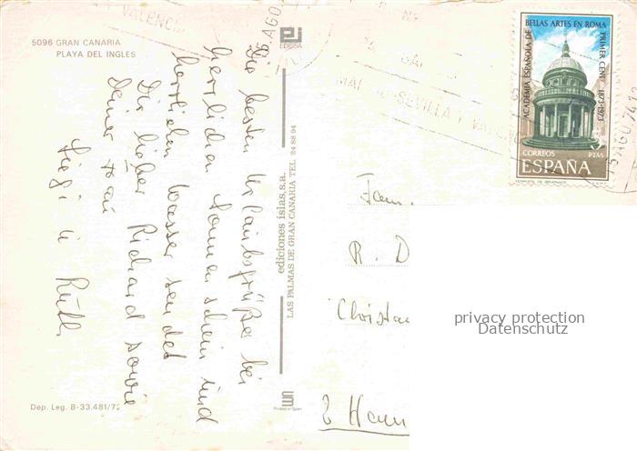 74046876 old postcard Playa del Ingles Gran Canaria ES Promenade postalisch gelaufen Erhaltung siehe scans [WerneD78] KatCode: 11510