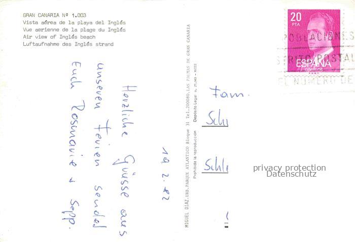 74110183 old postcard Playa del Ingles Gran Canaria ES Vista aerea de la playa del Ingles postalisch gelaufen Erhaltung siehe scans [WerneD78] KatCode: 11510