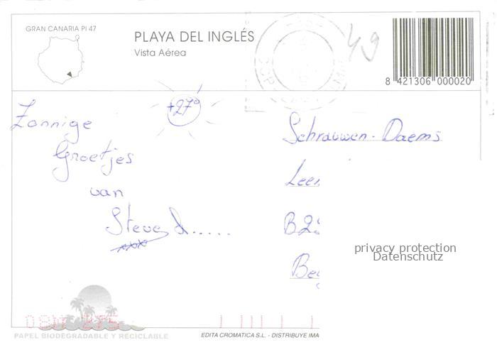 74156111 Playa del Ingles Gran Canaria ES Vista aérea postalisch nicht gelaufen Fliegeraufnahme Erhaltung siehe scans [FriedD77] KatCode: 11510