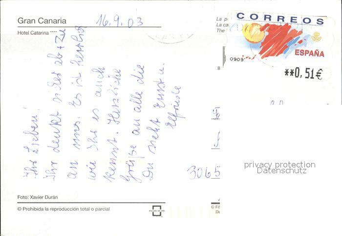 old postcard Playa del Ingles Hotel Catarina postalisch gelaufen Erhaltung siehe scans