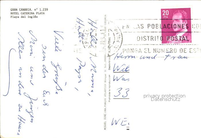 old postcard Playa del Ingles Hotel Caterina Playa postalisch gelaufen Erhaltung siehe scans