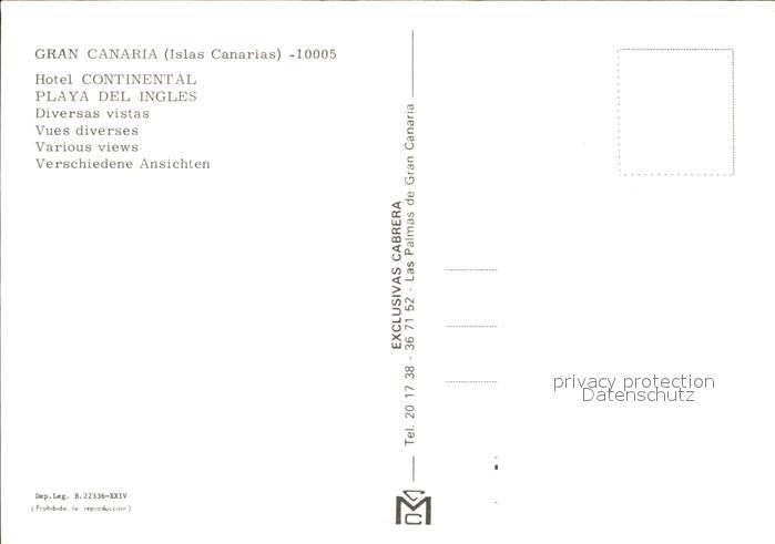 Playa del Ingles Hotel Continental Straende postalisch nicht gelaufen Erhaltung siehe scans [LiesaD40]