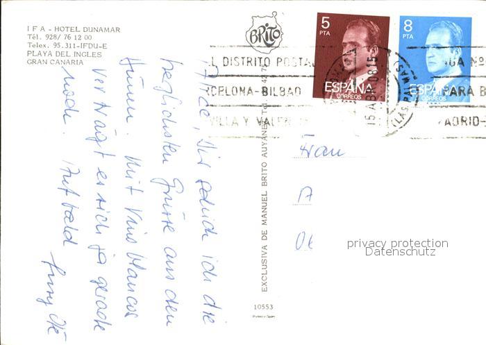 old postcard Playa del Ingles Hotel Dunamar postalisch gelaufen Erhaltung siehe scans