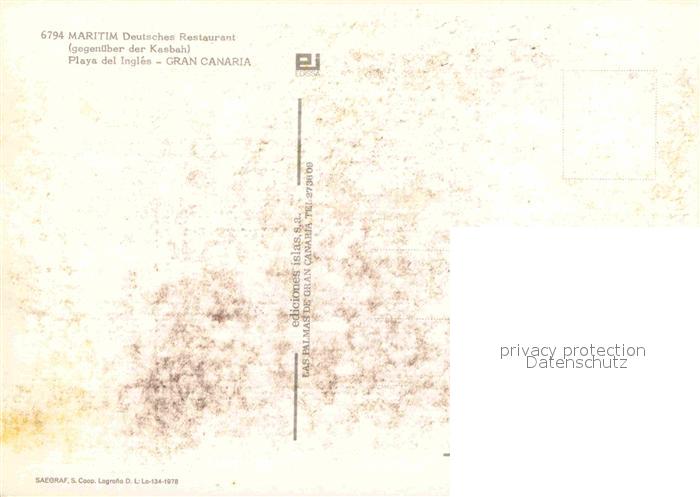 Playa del Ingles Hotel Maritim Deutsches Restaurant postalisch nicht gelaufen Erhaltung siehe scans [AndreD76]