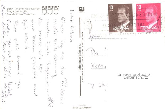 old postcard Playa del Ingles Hotel Rey Carlos postalisch gelaufen Erhaltung siehe scans