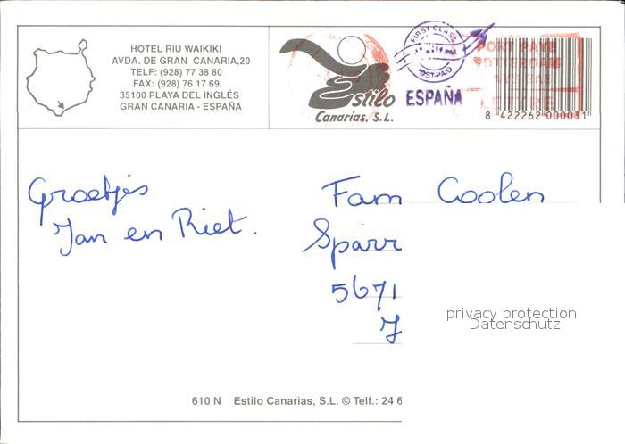 old postcard Playa del Ingles Hotel Riu Waikiki postalisch gelaufen Erhaltung siehe scans