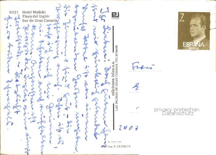 old postcard Playa del Ingles Hotel Waikiki Teich Swimming Pool postalisch gelaufen Erhaltung siehe scans