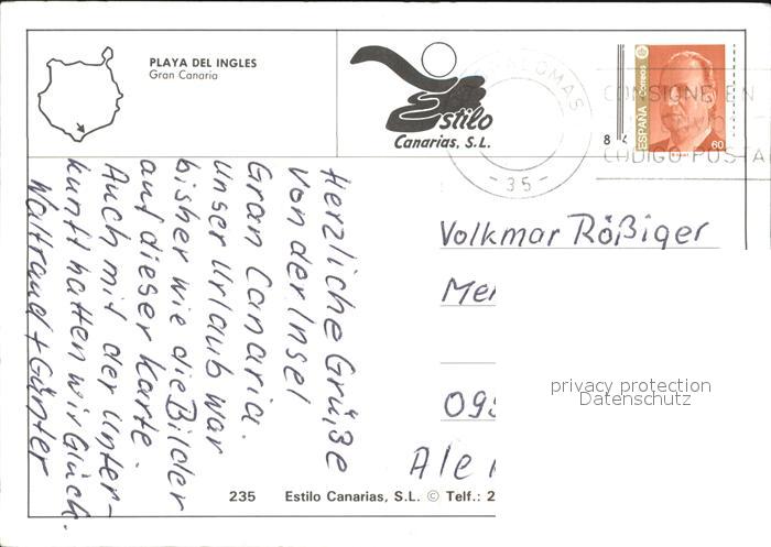 old postcard Playa del Ingles Hotelanlage Swimming Pool Strand Fliegeraufnahme postalisch gelaufen Erhaltung siehe scans