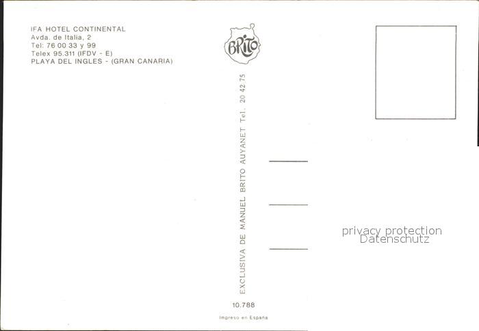 Playa del Ingles IFA Hotel Continental postalisch nicht gelaufen Erhaltung siehe scans
