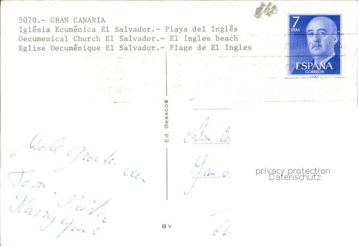 old postcard Playa del Ingles Iglesia Ecumenica El Salvador Kirche postalisch gelaufen Erhaltung siehe scans