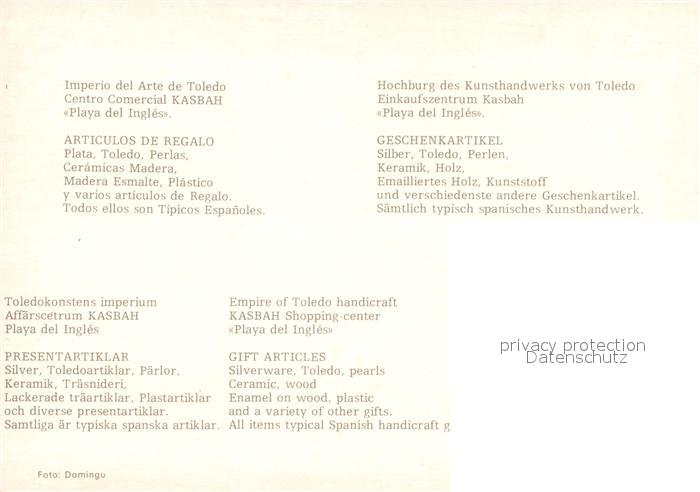Playa del Ingles Imperio del Arte de Toledo Centro Commercial Kasbah Playa postalisch nicht gelaufen Werbekarte (keine Postkarte) Erhaltung siehe scans [FriedD77]