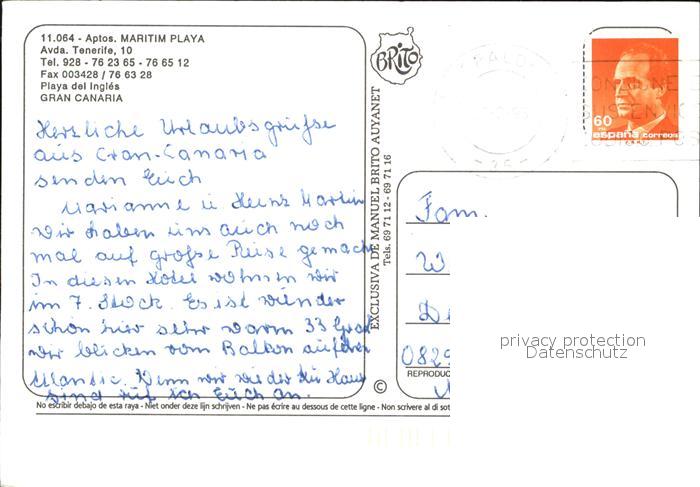 old postcard Playa del Ingles Maritim Playa Swimmingpool Zimmer postalisch gelaufen Erhaltung siehe scans