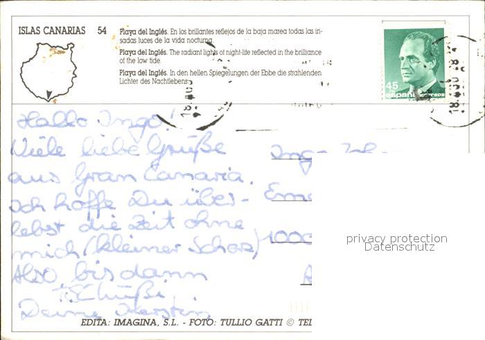 old postcard Playa del Ingles Nachtaufnahme postalisch gelaufen Erhaltung siehe scans