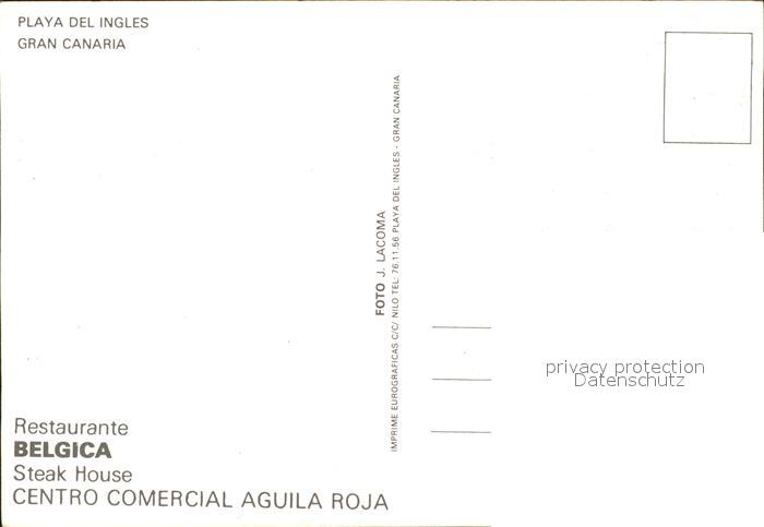 Playa del Ingles Restaurant Belgica postalisch nicht gelaufen Erhaltung siehe scans