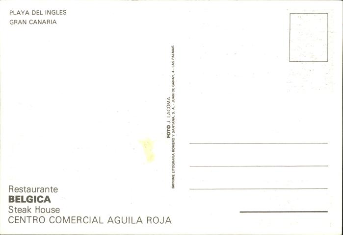 Playa del Ingles Restaurante Belgica Steak-House Centro Comerical Aguila Roja postalisch nicht gelaufen Erhaltung siehe scans