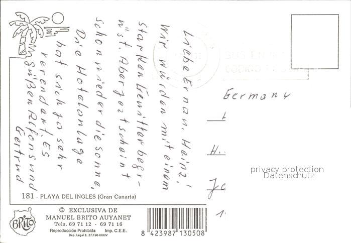 old postcard Playa del Ingles Strand postalisch gelaufen Erhaltung siehe scans