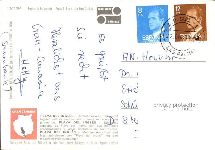 old postcard Playa del Ingles Strand Nachtaufnahmen postalisch gelaufen Erhaltung siehe scans