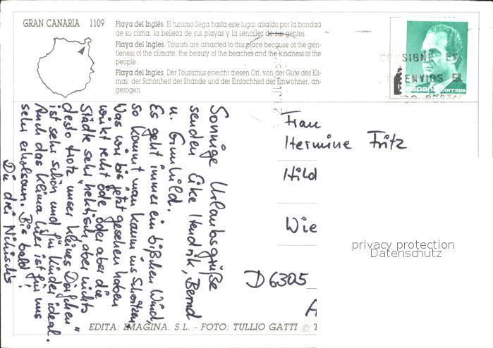 old postcard Playa del Ingles Strandansicht postalisch gelaufen Erhaltung siehe scans [AndreD76 kv012box]