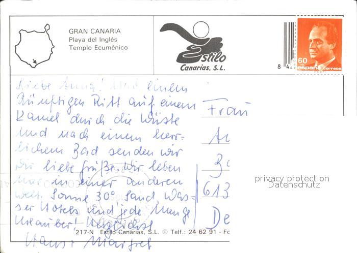 old postcard Playa del Ingles Templo Ecumenico postalisch gelaufen Erhaltung siehe scans