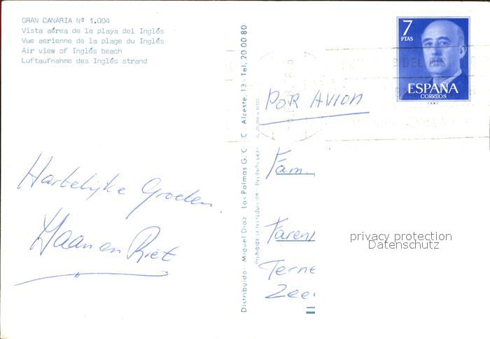 old postcard Playa del Ingles Vista aerea postalisch gelaufen Erhaltung siehe scans