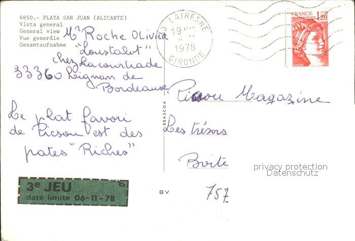 old postcard Playa San Juan Vista general postalisch gelaufen