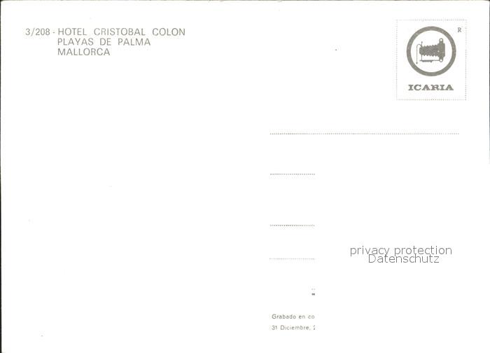 Playas de Palma Mallorca Hotel Cristobal Colon Rezeption Gastraum Bar postalisch nicht gelaufen Erhaltung siehe scans
