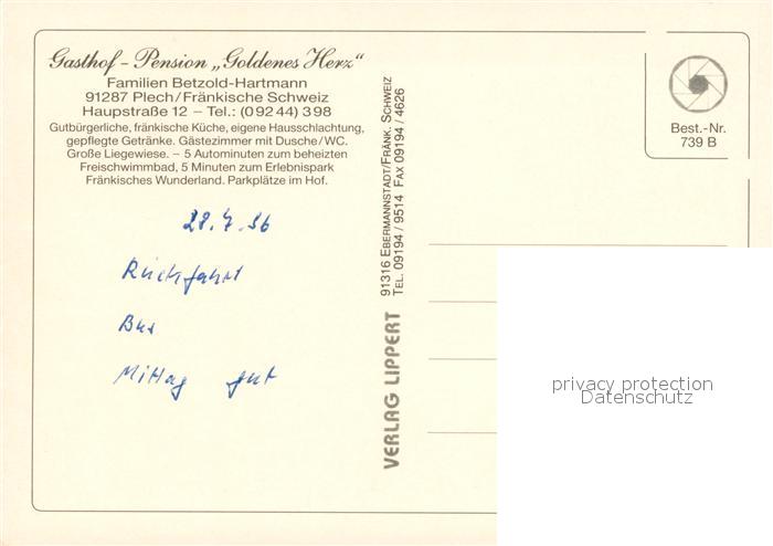 73662304 Plech Gasthof Pension Goldenes Herz in der Fraenkischen Schweiz postalisch nicht gelaufen Erhaltung siehe scans [FriedD77] KatCode: 11110009472177