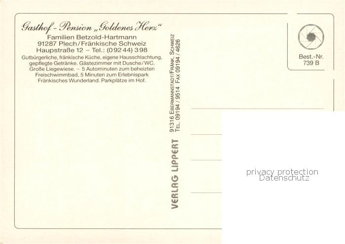 73779939 alte Postkarte Plech Gasthof Pension Goldenes Herz postalisch gelaufen Erhaltung siehe scans [WerneD78] KatCode: 11110009472177