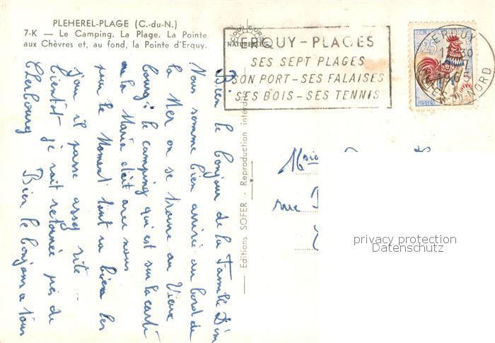 13775455 Pleherel Frehel 22 Le Camping – La Plage – La Pointe aux Chevres et la Pointe d Erguy postalisch gelaufen Erhaltung siehe scans [LiesaD40] carte postale Lies Katcode 11170022122179