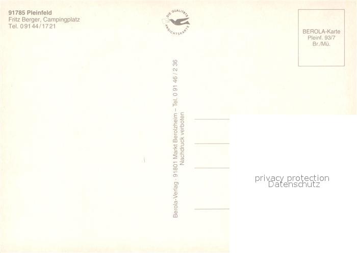 73035805 Pleinfeld Fritz Berger Campingplatz postalisch nicht gelaufen Erhaltung siehe scans [KathaD81] KatCode: 11110009577161
