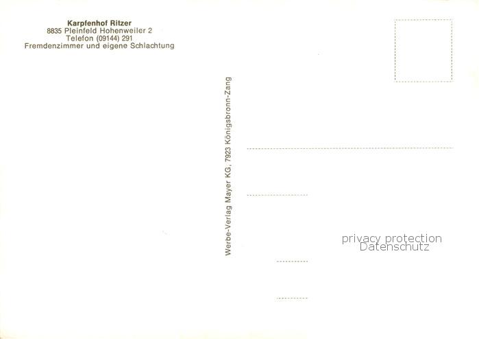 73835422 Pleinfeld Karpfenhof Ritzer Gastraum postalisch nicht gelaufen Erhaltung siehe scans [WerneD78] KatCode: 11110009577161