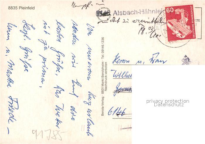 73269543 alte Postkarte Pleinfeld Schwimmbad Panorama Spalter Tor Marktplatz postalisch gelaufen Erhaltung siehe scans [WerneD78] KatCode: 11110009577161