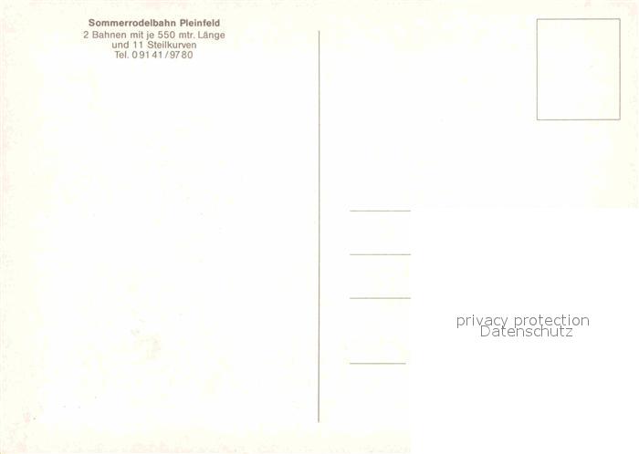 72917263 Pleinfeld Sommerrodelbahn postalisch nicht gelaufen Erhaltung siehe scans [KathaD81] KatCode: 11110009577161