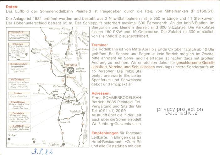 72141601 Pleinfeld Sommerrodelbahn Fliegeraufnahme postalisch nicht gelaufen Erhaltung siehe scans KatCode: 11110009577161