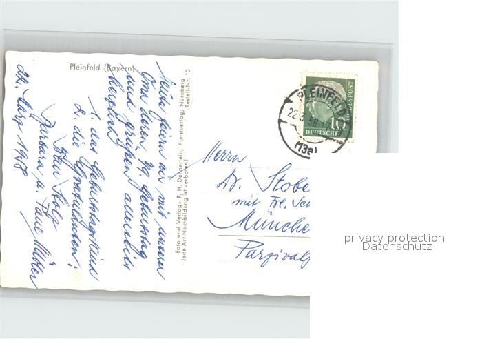 72219842 alte Postkarte Pleinfeld postalisch gelaufen Erhaltung siehe scans KatCode: 11110009577161