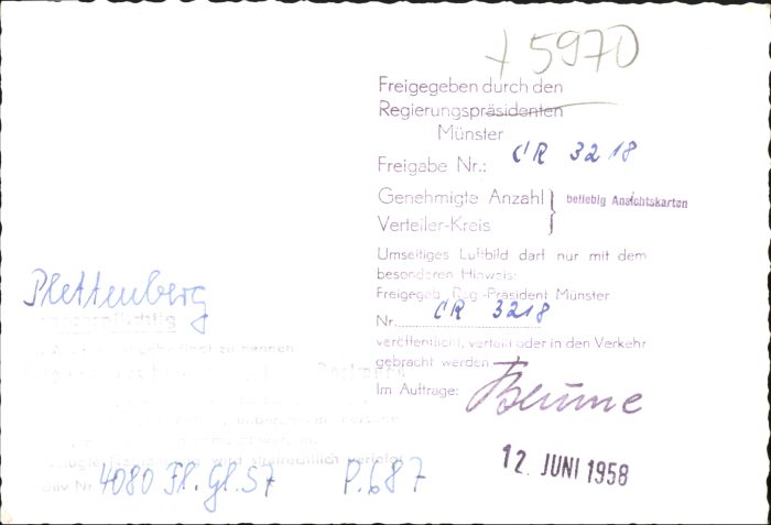 40679423 Plettenberg Fliegeraufnahme postalisch nicht gelaufen Alte Ansichtskarte Postkarte Katcode 11110005962052
