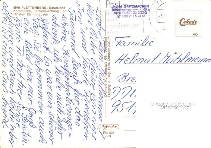 alte Postkarte Plettenberg Fliegeraufnahme Kersmecke Eschensiedlung Eiringhausen postalisch gelaufen Erhaltung siehe scans